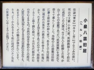 ・昼食後、「武家屋敷」ー「小泉八雲旧邸」ー「小泉八雲記念館」と順次見学した。